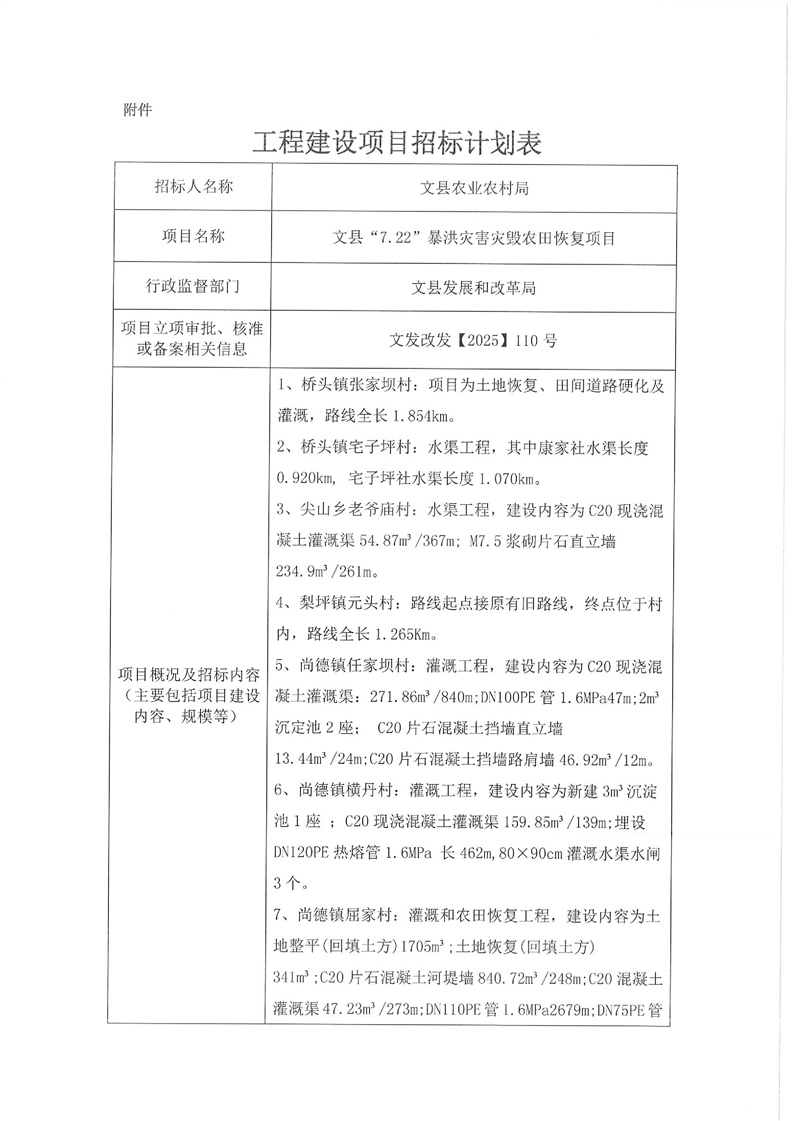 文縣“7.22”暴洪災害災毀農田恢復項目