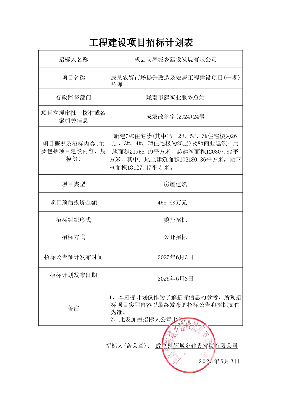 成縣農(nóng)貿(mào)市場提升改造及安居工程建設(shè)項(xiàng)目(一期)監(jiān)理