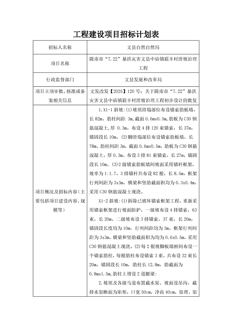 隴南市“7.22”暴洪災害文縣中廟鎮(zhèn)聯(lián)豐村滑坡治理工程招標計劃表.pdf