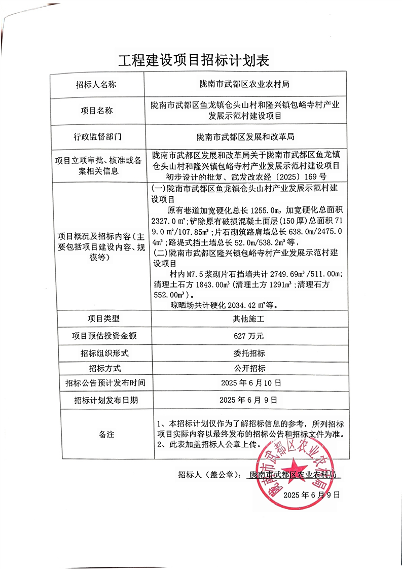 隴南市武都區(qū)魚龍鎮(zhèn)倉頭山村和隆興鎮(zhèn)包峪寺村產(chǎn)業(yè)發(fā)展示范村建設(shè)項目