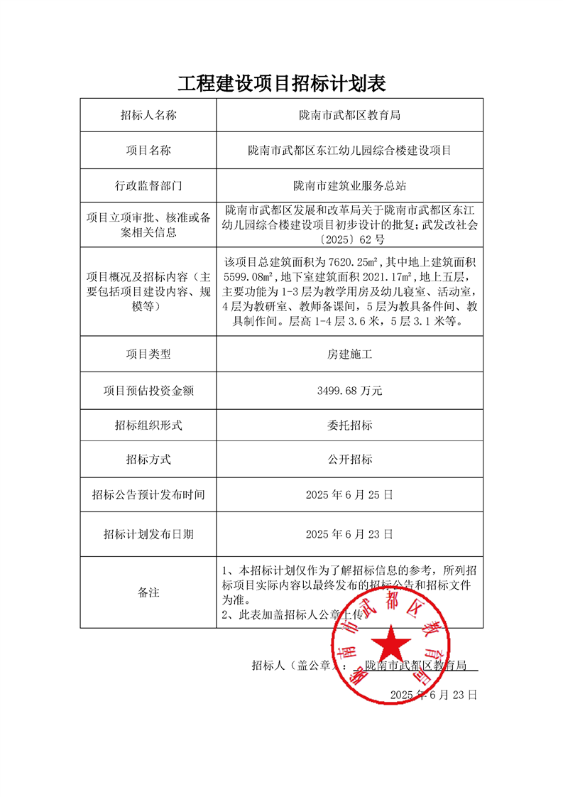 隴南市武都區(qū)東江幼兒園綜合樓建設項目