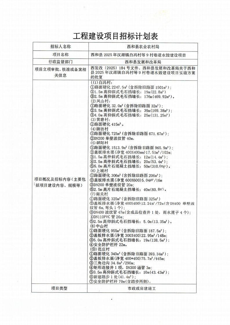 西和縣2025年漢源鎮(zhèn)白馮村等9村巷道水毀建設(shè)項目