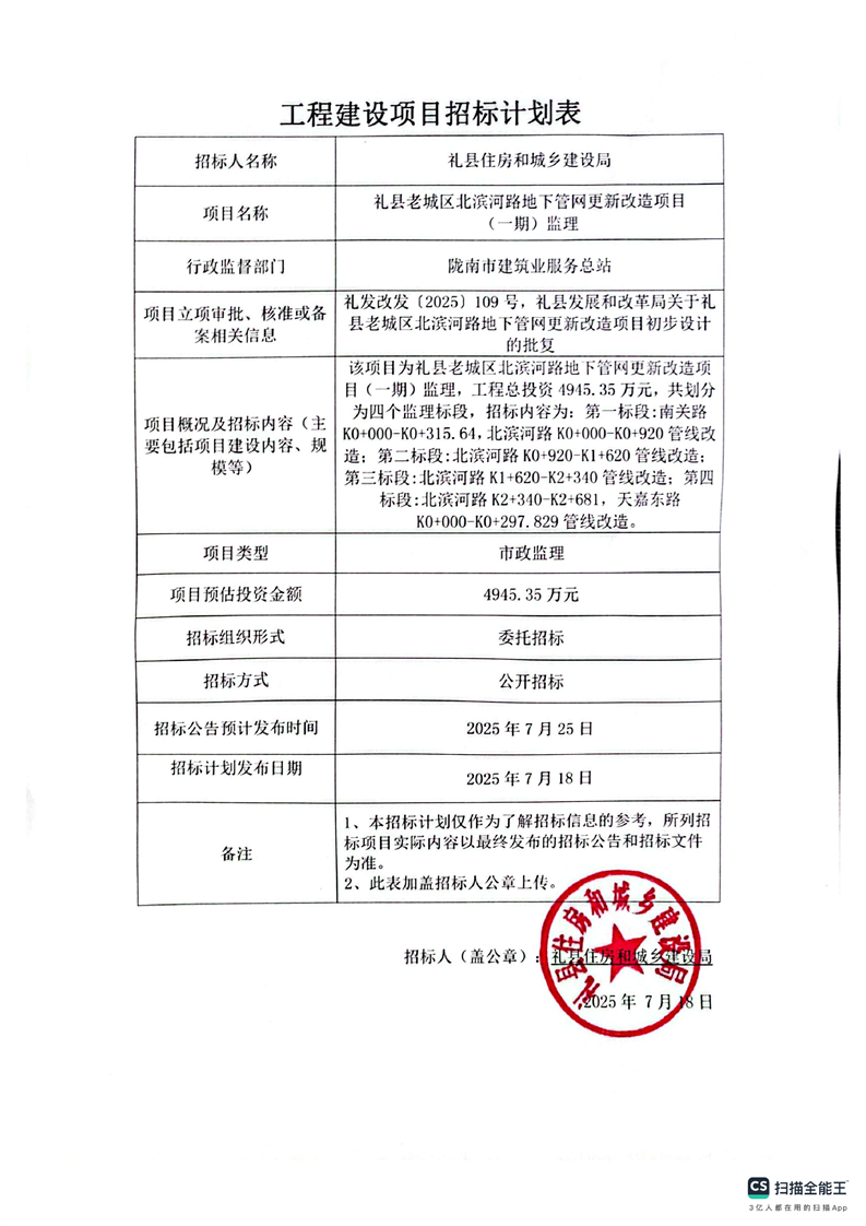 禮縣老城區(qū)北濱河路地下管網(wǎng)更新改造項(xiàng)目(一期)監(jiān)理