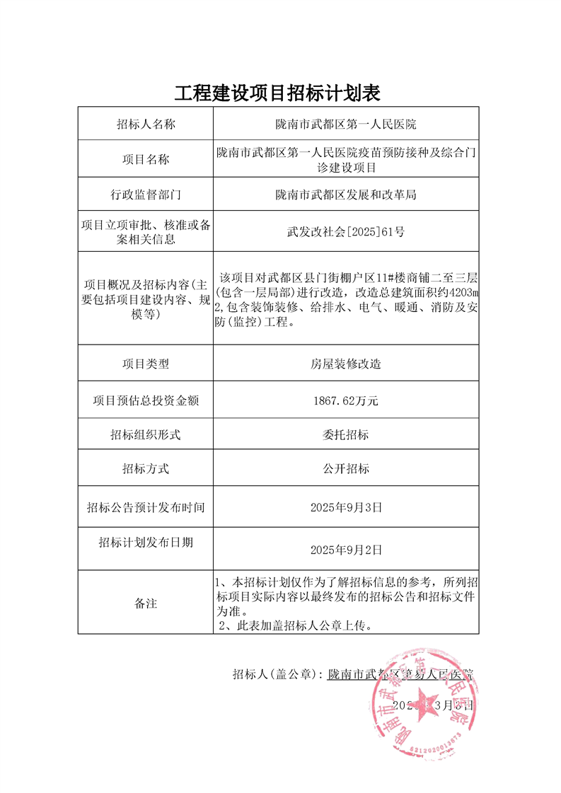 隴南市武都區(qū)第一人民醫(yī)院疫苗預(yù)防接種及綜合門診建設(shè)項目
