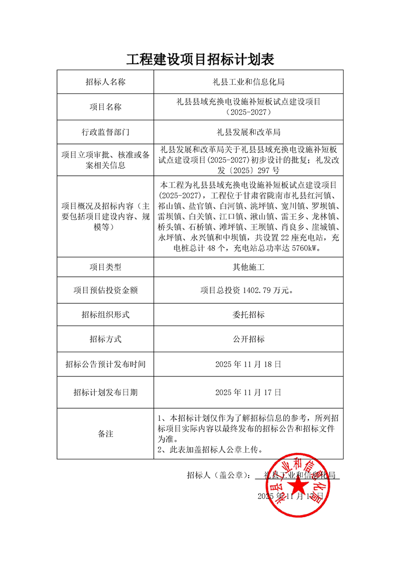附件:招標(biāo)計(jì)劃—禮縣縣域充換電設(shè)施補(bǔ)短板試點(diǎn)建設(shè)項(xiàng)目(2025-2027).pdf