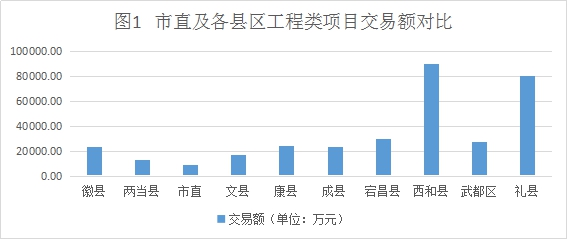 1.工程類項(xiàng)目:市直6項(xiàng),交易額8655.19萬元;武都區(qū)29項(xiàng),交易額27254.23萬元;成縣24項(xiàng),交易額23254.25 萬元;徽縣26項(xiàng),交易額23476.37萬元;西和縣70項(xiàng),交易額90305.24萬元;禮縣41項(xiàng),交易額80922.67萬元;康縣29項(xiàng),交易額24450.87萬元;文縣17項(xiàng),交易額17048.62萬元;宕昌縣34項(xiàng),交易額30189.76萬元;兩當(dāng)縣7項(xiàng),交易額13081.40萬元。