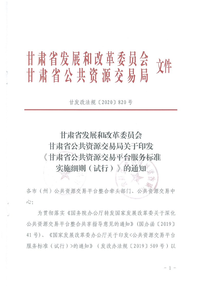 省發(fā)改委省公共資源交易局關(guān)于印發(fā)《甘肅省公共資源交易平臺(tái)服務(wù)標(biāo)準(zhǔn)實(shí)施細(xì)則(試行)》的通知